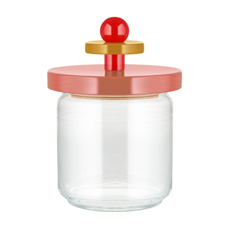 Alessin Sottsass-purkki on poikkeuksellisen ilmaisuvoimainen säilytysastia, jonka on suunnitellut italialaisen muotoilun legenda Ettore Sottsass. Lasisen säilytysastian kruunaa pientä toteemia muistuttava pyökkipuinen kansi, jonka ansiosta voit säilöä purkkiin ilmatiivisti jauhoa, sokeria, pastaa ja muita kuiva-aineita.