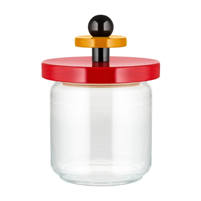 Alessin Sottsass-purkki on poikkeuksellisen ilmaisuvoimainen säilytysastia, jonka on suunnitellut italialaisen muotoilun legenda Ettore Sottsass. Lasisen säilytysastian kruunaa pientä toteemia muistuttava pyökkipuinen kansi, jonka ansiosta voit säilöä purkkiin ilmatiivisti jauhoa, sokeria, pastaa ja muita kuiva-aineita.