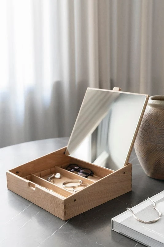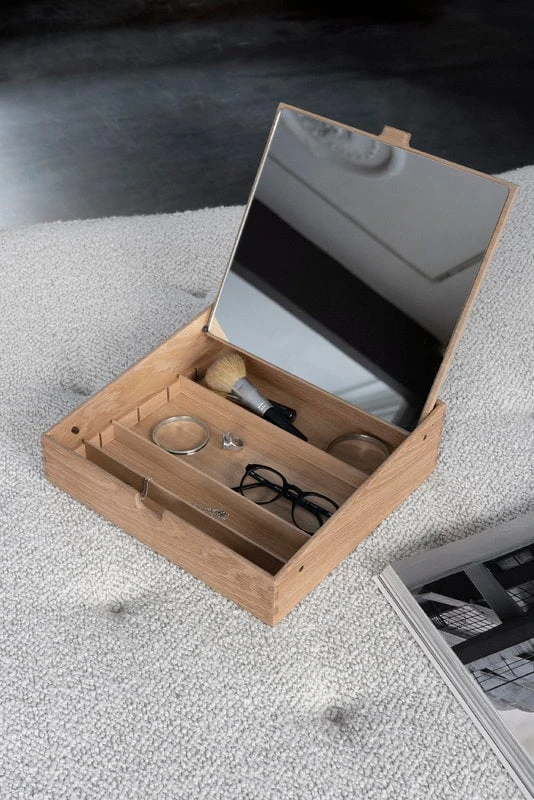 Klassik Studion Beauty Box on Ejner Larsenin ja Aksel Bender Madsenin vuonna 1954 suunnittelema pelkistetty ja ajaton korurasia. Kooltaan 31 x 29 cm Beauty Box on valmistettu öljytystä tammesta, ja sen luonnollinen puupinta ja esiin jätetyt kampaliitokset korostavat kauniisti luonnollisen materiaalin elävyyttä sekä taidokasta käsityön jälkeä. Korurasian kannen alapuolella on reilun kokoinen peili, ja sen lokeroiden kokoa voi muunnella liikuteltavien välikappaleiden avulla.