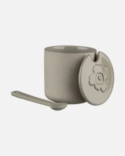 Marimekon Oiva-purkin kylkeä kiertää Maija Louekarin ihastuttava Alku-kuosi. Oiva-sarjaan kuuluva keraaminen purkki kestää konepesua, ja sen tilavuus on 0,7 litraa. Purkin korkkikannessa on Marimekon logo.