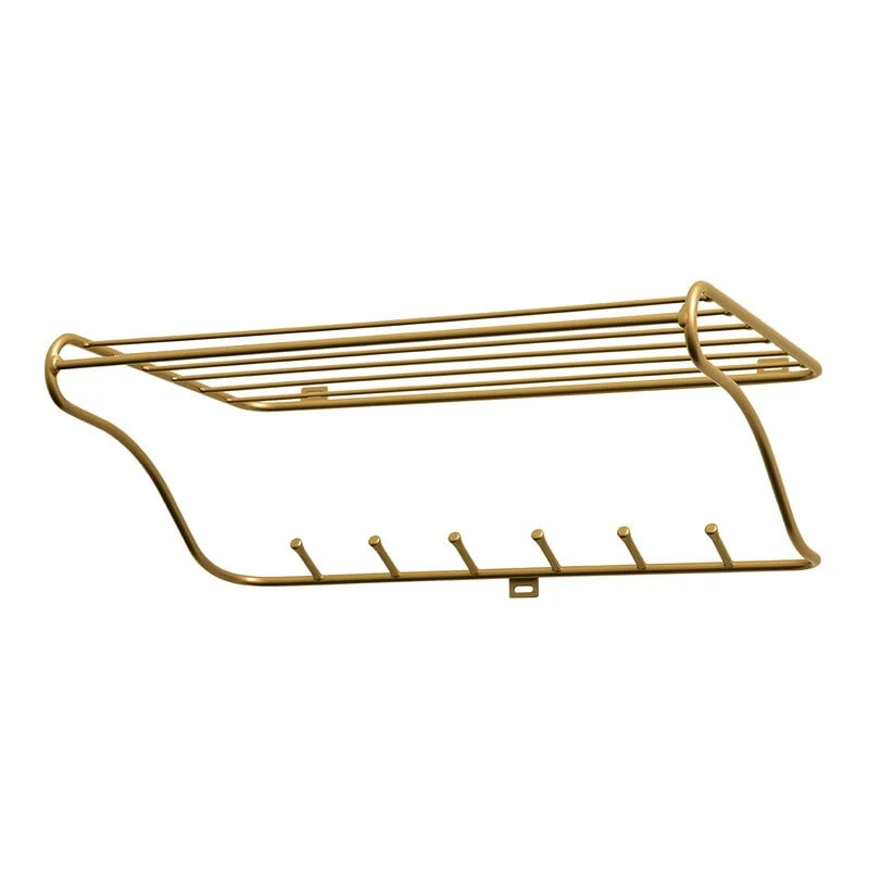 Ruotsalaisen Mazen Hat Rack on näppärän kokoinen ja ilmavasti muotoiltu hattuhylly, joka löytää paikkansa pienenkin eteisen seinältä. Hat Rack tarjoaa säilytystilan hattujen lisäksi takeille, laukuille ja asusteille, sillä hattuhyllyn alle on kiinnitetty kuusi pientä koukkua, ja hyllyn metallirakenteeseen voi helposti ripustaa myös henkareita. Hat Rackin on suunnitellut Olof Kolte ja se on valmistettu 100 % kierrätetystä metallista.