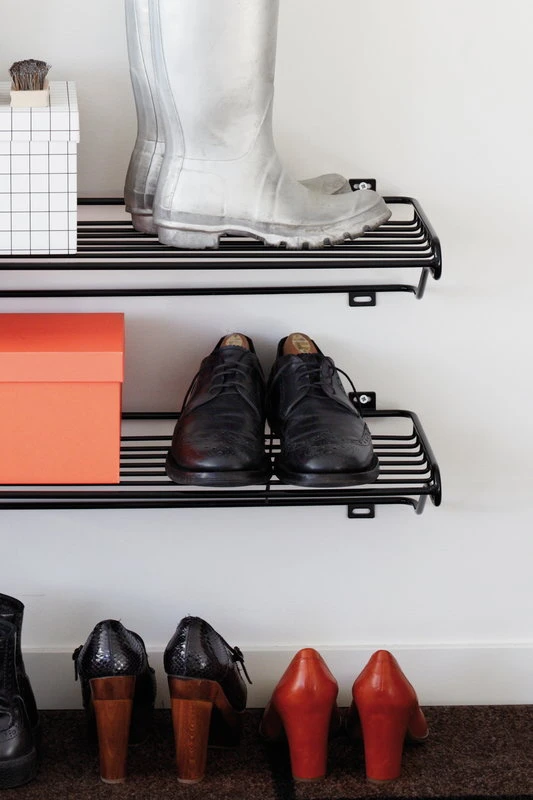 Ruotsalaisen Mazen Shoe Shelf on näppärän kokoinen ja ilmavasti muotoiltu kenkäteline, joka löytää paikkansa pienenkin eteisen seinältä. Shoe Shelf tarjoaa tyylikkään säilytystilan kengille ja säilytyslaatikoille, ja halutessasi voit luoda suuremman kokonaisuuden kiinnittämällä seinälle useamman kenkähyllyn. Shoe Shelfin on suunnitellut Olof Kolte ja se on valmistettu 100 % kierrätetystä metallista.