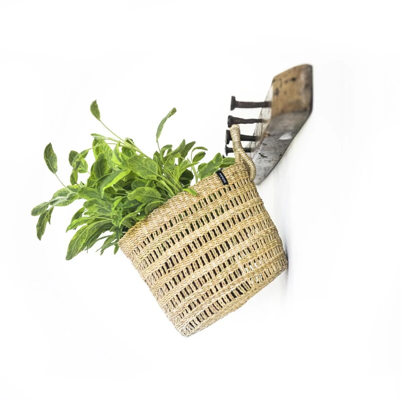 Mifukon Bolga-kori tuo yhteen perinteet maailman ääriltä: minimalistisen skandinaavisen suunnittelun ja ghanalaisen käsityön. Elefanttisulkahirssistä eli elefanttiheinästä valmistettu kestävä kori sopii niin toimistotarvikkeiden ja keittiövälineiden säilytykseen kuin viehättäväksi yrttien suojaruukuksi. Tukeva ripustuslenkki mahdollistaa korin nostamisen seinälle tai vaikkapa keittiökoukkuun roikkumaan. Kauniit ja uniikit Bolga-korit valmistetaan käsin Ghanassa, ja jokainen kori on tekijänsä signeeraama.