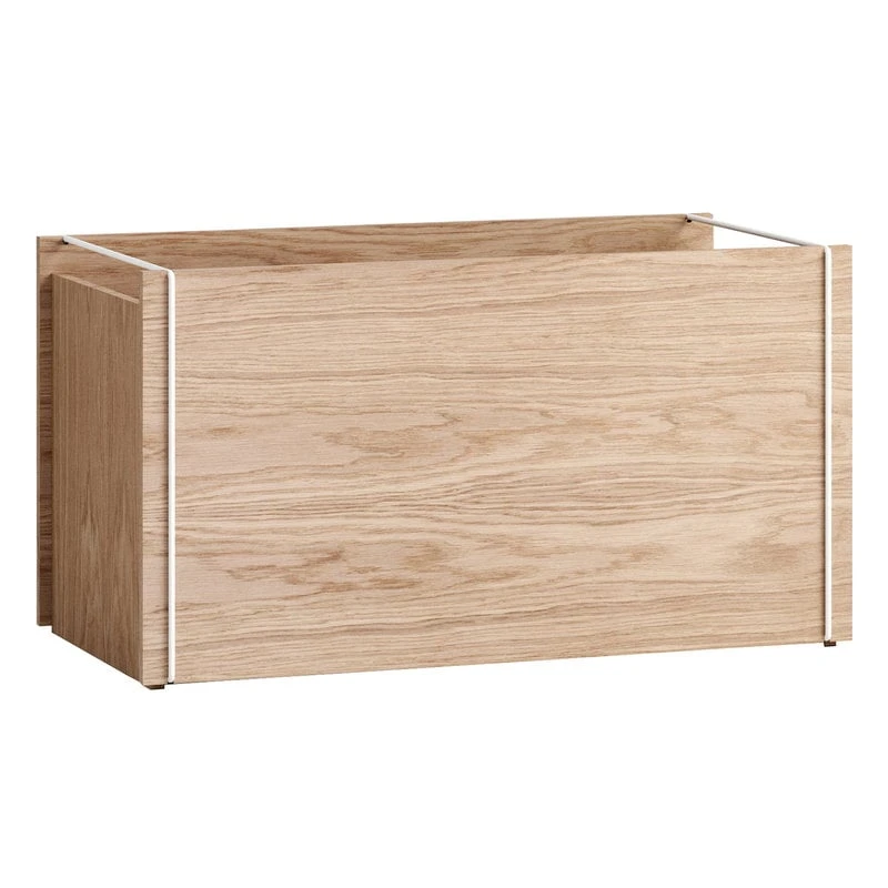 Moeben säilytyslaatikko tarjoaa minimalistisen tyylikkäät puitteet aikakauslehtien, lelujen, koristetyynyjen tai vaikkapa mappien säilytykseen. Laatikko on pinottava – voit siis kasata jopa kolmesta boksista näppärän säilytysjärjestelmän, jonka osat on tarvittaessa helppo nostaa erilleen käyttämällä laatikon rakennetta tukevien metallikehikkojen yläosia kahvoina. Puisen säilytyslaatikon voi kääntää myös lappeelleen tai pystyyn ja tehdä siitä yö- tai sivupöydän.
