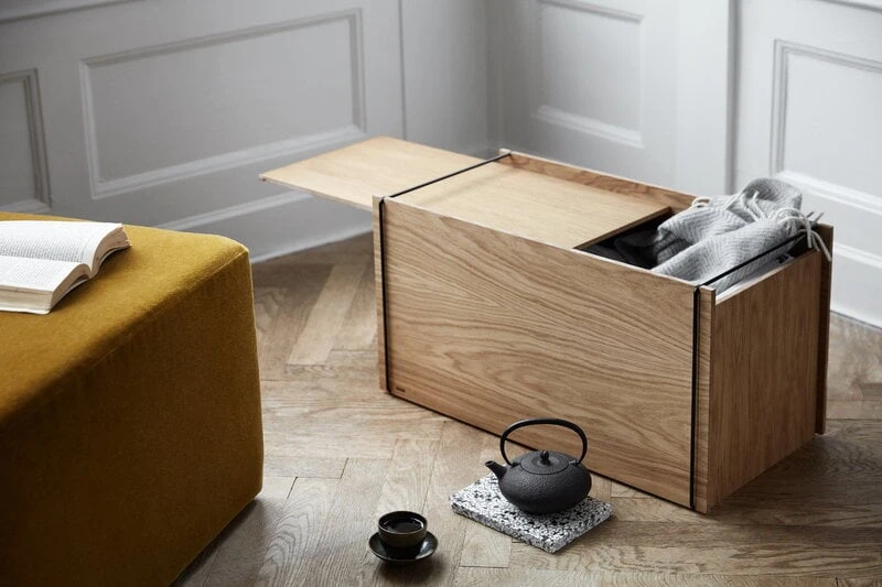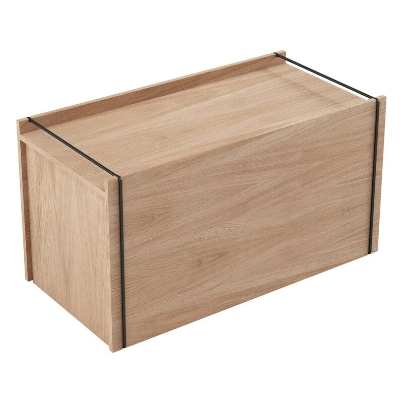 Moeben säilytyslaatikon kansi toimii lisäosana tammiselle säilytyslaatikolle. Kansi mahdollistaa laatikon käyttämisen myös vaikkapa pienenä sivupöytänä – kannen voi asettaa myös pinottujen laatikoiden päälle niin, että laatikkopinosta muodostuu kätevä lisätaso. Huomaathan, ettei laatikko kuitenkaan kestä istumista tai seisomista sen päällä.