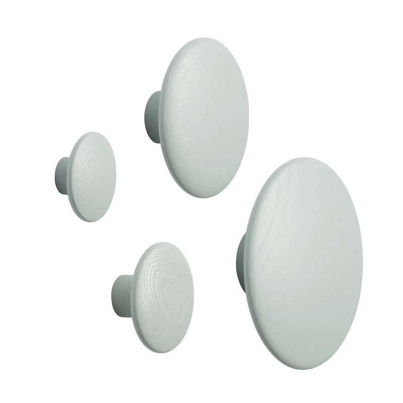 Muuton Dots Wood -ripustimet sopivat oivallisesti vaatteiden, laukkujen, pyyhkeiden ja asusteiden ripustamiseen – sinä päätät käyttötarkoituksen! Lars Tornøen suunnittelemien Dots Wood -ripustimien materiaalina on käytetty sileää, pyöreäksi hiottua puuta, joka luo kauniin ja leikkisän kontrastin monenlaisia seinämateriaaleja vasten. Sommittele Dots-perheen erikokoisista ja -värisistä ympyröistä mieleisesi kokoelma esimerkiksi eteisen, keittiön tai makuuhuoneen seinälle tai uudista säilytyskalusteiden ilme asentamalla Dots-ripustimet kaapinovien ja laatikoiden vetimiksi. Voit myös yhdistellä eri materiaaleista valmistettuja Dots-ripustimia toisiinsa.