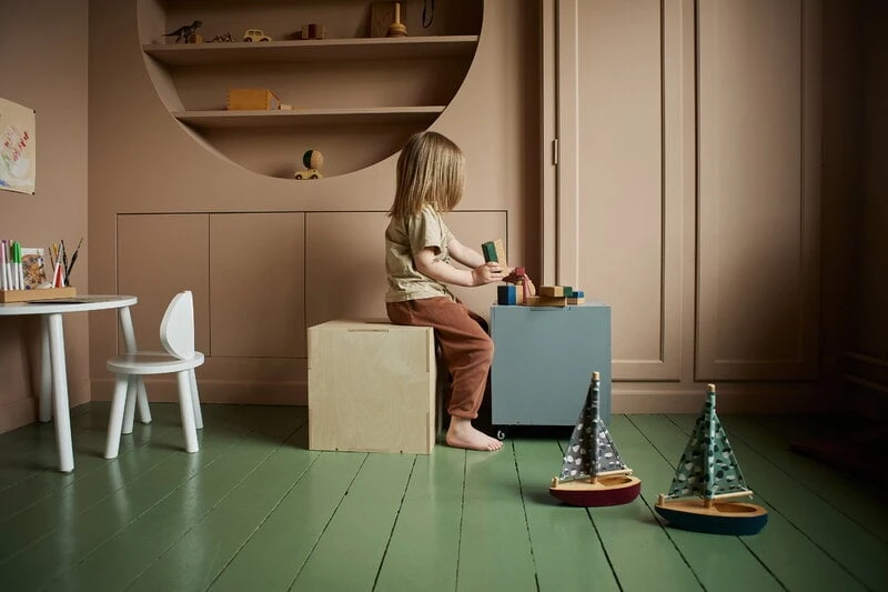 Nofredin Cube-säilytyslaatikko auttaa pitämään lelut hyvässä tallessa ja lastenhuoneen siistissä järjestyksessä. Nofredin ideologiaan kuuluu tuoda lapset osaksi kodin arkea myös muualla kuin lastenhuoneessa, ja pelkistetyn ilmeensä ansiosta säilytyslaatikko sopiikin mainiosti myös vaikkapa eteisen tai olohuoneen säilytyskalusteeksi. Samalla se toimii tilassa myös näppäränä laskutasona ja sivupöytänä. Tukevarakenteinen Cube-laatikko kestää jopa istumista – se on siis todellinen lastenkalusteiden moniottelija! Cube on valmistettu sertifioidusta koivuviilusta.