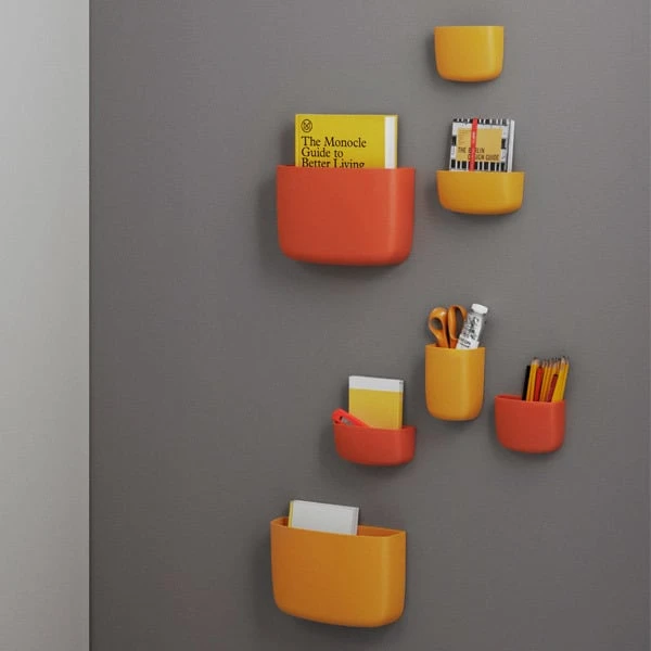 Simon Legaldin Normann Copenhagenille suunnitteleman Pocket-säilyttimen pyöreä ja yksinkertainen muoto tekee siitä hauskan ja helposti lähestyttävän. Paidan taskusta inspiraationsa saanut Pocket kiinnitetään seinään. Se sopii erinomaisesti pieniin tiloihin, joissa on vähän säilytystilaa. Kiinnitä Pocket vaikkapa työpisteen ääreen: saat sinne talteen kynät, paperit ja muut tärkeät tavarat. Saatavilla on useita eri kokoja ja värejä – yhdistele Pocket-säilyttimistä haluamasi kokonaisuus!