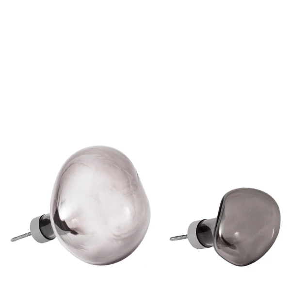 Petite Frituren lasisilla Bubble-ripustuskoukuilla on viehättävä, epäsymmetrinen muoto, joka on puhallettu muottiin. Koukut leikittelevät haurauden illuusiolla, ja suunnittelijakaksikko Vaulot & Dyèvre on luonnehtinut niitä ikiajoiksi jäätyneiksi saippuakupliksi. Paikoilleen asennettuna ne näyttävät syntyvät suoraan seinästä. Bubble-koukut ovat mainio lisä eteiseen, kylpyhuoneeseen ja lastenhuoneeseen – missä vain on tarvetta ripustamiselle tai kuulaille lasisomisteille. Kokoa mieleisesi kokonaisuus erikokoisista ja -värisistä ripustimista.
