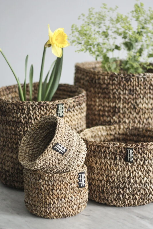 Tikaun Round-banaanikuitukorit valmistetaan käsityönä Etelä-Intiassa reilun kaupan periaatteiden mukaisesti ja paikallisten artesaanien perinteikkäitä metodeja kunnioittaen. Maaseutukylien taidokkaiden käsityöläisten punomat uniikit korit on valmistettu ekologisesta ja kemikaalivapaasta banaanipuun lehdistä saatavasta kuidusta.