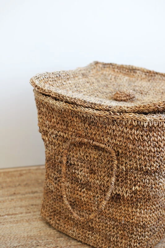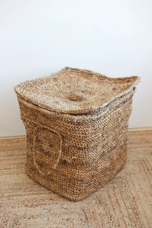 Tikaun kannellinen Taina-kori on kaunis ja käytännöllinen käsityönä banaanikuidusta valmistettu säilytin. Kahvoilla varustettu Taina-kori tuo rennon maanläheistä tunnelmaa sisustukseen, ja se sopii monenlaiseen säilytykseen: hurmaavan korin kätköihin voisi käden käänteessä sujauttaa niin eteisessä lojuvat huivit ja hansikkaat kuin lastenhuoneen lelutkin. Banaanikuitu kestää hyvin kosteutta, joten Taina-kori on myös oiva valinta vaikkapa likapyykille, ja miksei myös roskakoriksi.