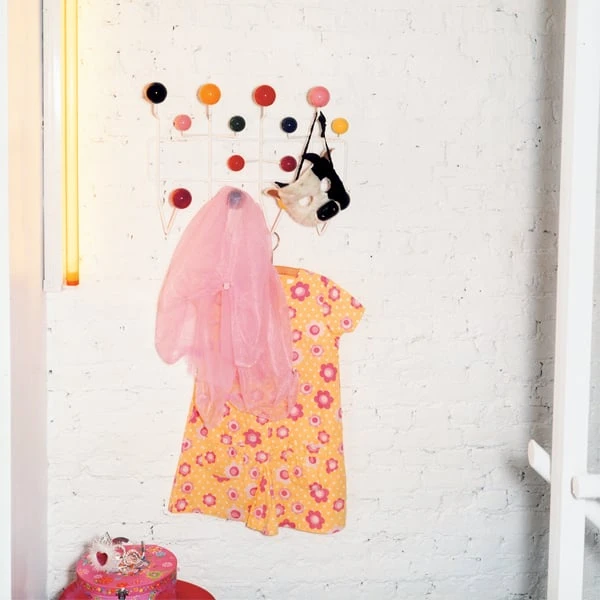 Charles ja Ray Eames suunnittelivat Hang it all -naulakon vuonna 1953 lasten ikiomaksi ripustimeksi, mutta sen väripaletti ja muotokieli puhuttelevat myös aikuisia. Hang it all -naulakon neljääntoista puupalloon mahtuu roikkumaan samanaikaisesti useampikin vaate ja asuste, ja naulakot yhdistyvät siististi myös suuremmiksi kokonaisuuksiksi. Vitran valmistama Hang it all sopii lasten ja nuorten huoneeseen, mutta se piristää myös eteisen ja pukeutumishuoneen.