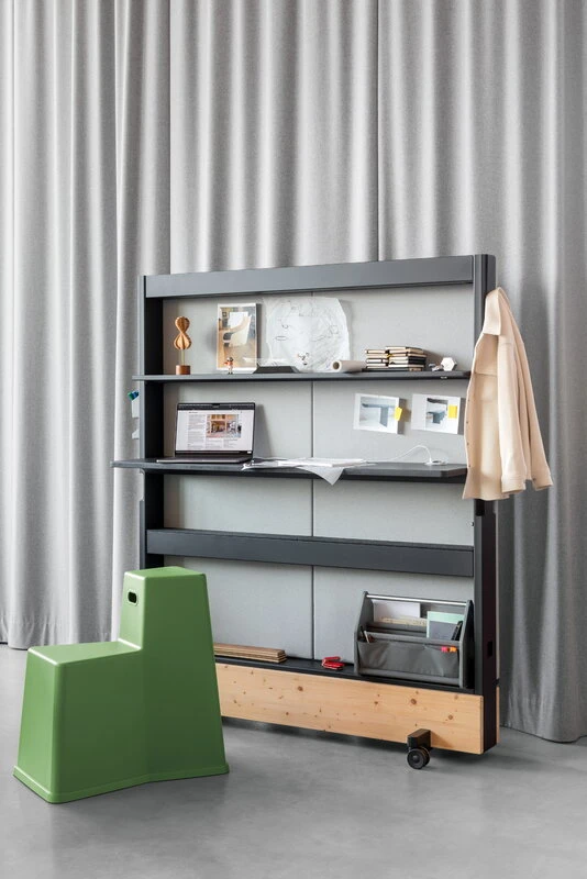 Vitran Locker Box on suunniteltu alati muuttuvan toimistotyön tarpeisiin. Monissa toimistoissa on käytössä niin sanottu hot desking -käytäntö, jossa työntekijöillä ei ole omia työpisteitä, vaan työpistettä vaihdetaan kulloisenkin tehtävän mukaan – etätöistä puhumattakaan. Locker Boxissa kannettava tietokone, hiiri, näppäimistö ja muut tarvikkeet kulkevat näppärästi mukana työpisteeltä toiselle, ja lisäksi se on helppo siivota säilöön työpäivän päätteeksi. Osittain kierrätysmateriaaleista valmistetun Locker Box RE -säilyttimen on suunnitellut Konstantin Grcic.